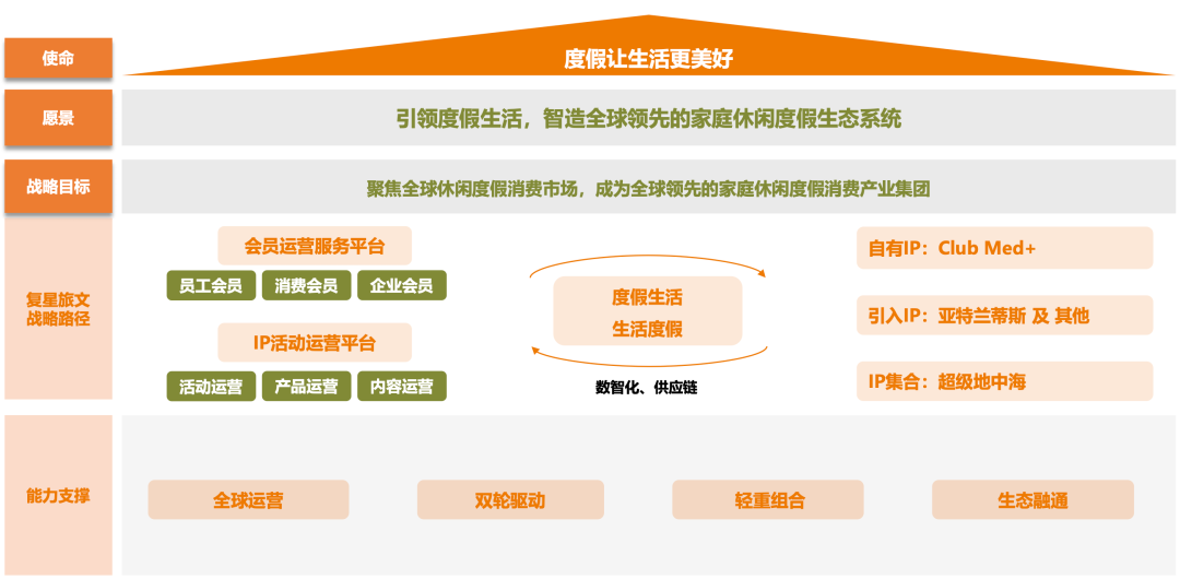 总之,我们认为“度假即生活、生活即度假”就是未来度假产业发展的核心趋势。复星旅文未来也将围绕以上两个维度进行布局。为此,我们也提出了我们公司新的使命和愿景。