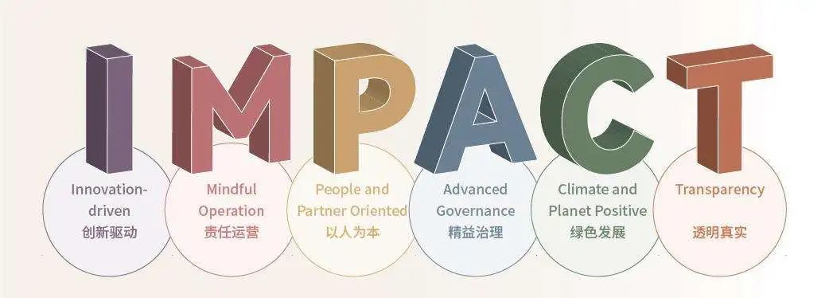 今年,复星提出了可持续发展战略:“创造影响力”(Create IMPACT),确定了六大长期战略方向,即:I: Innovation-driven 创新驱动、M: Mindful Operation 责任运营、P: People and Partner Oriented 以人为本、A: Advanced Governance精益治理、C: Climate and Planet Positive 绿色发展、T: Transparency透明真实,这是复星成立以来的初心延续,也是ESG实践长期贯彻执行的保障。