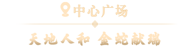 位于C位的耀眼金蛇,释放满满祥瑞!每晚伴随乐曲《金蛇狂舞》动态亮灯,以繁茂温暖的丛林之景为新年送福。