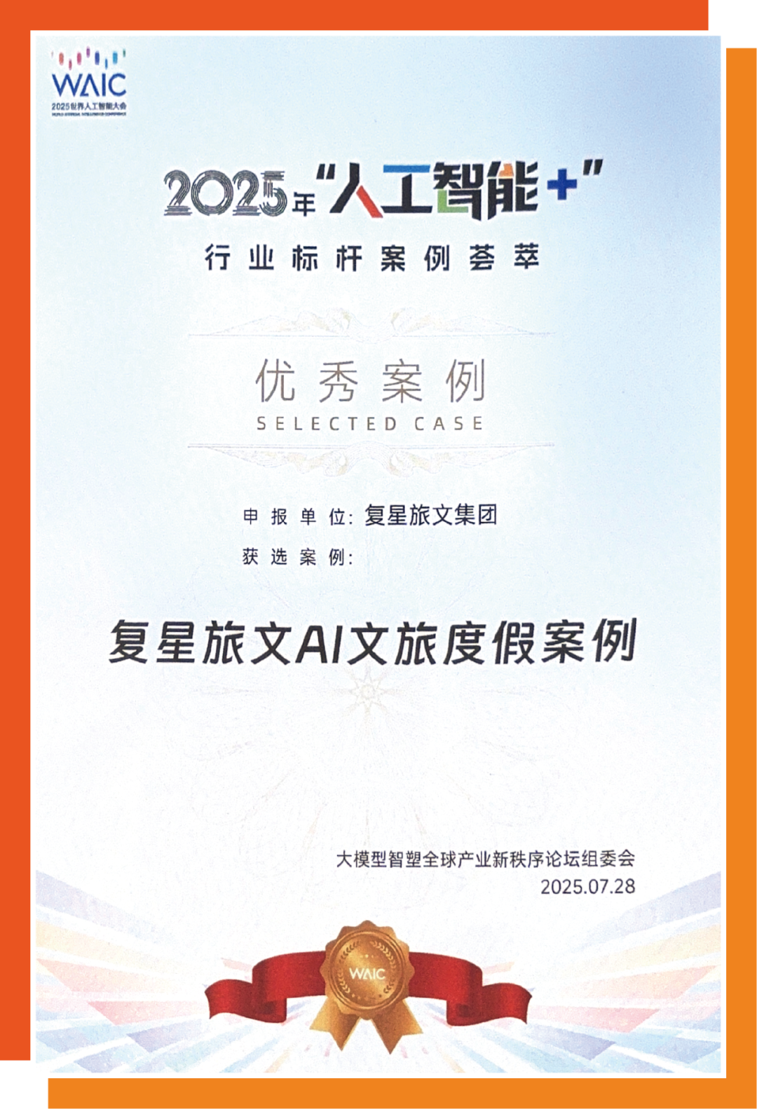 WAIC | 复星旅文入选《2025年“人工智能+”行业标杆案例荟萃》