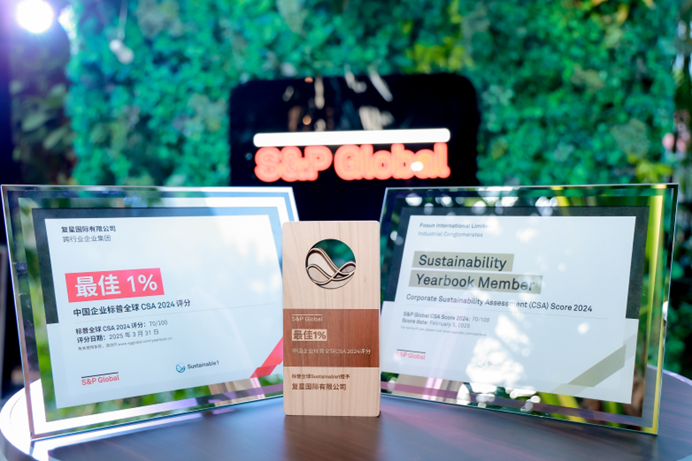 凭借多年来在ESG领域的持续努力,复星国际于2025年再度成功入选标普全球《可持续发展年鉴2025》,并在《可持续发展年鉴》(中国版)2025名列最佳1%。