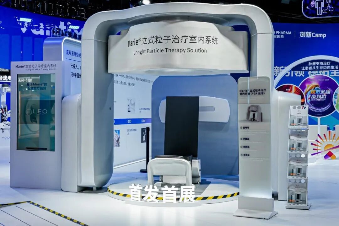 本届进博会,围绕推动肿瘤从“治疗”到“治愈”,复星带来一系列创新前沿产品。其中,首展产品——“Marie立式粒子治疗室内系统”备受瞩目。