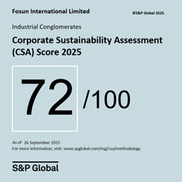 凭借多年来在ESG领域的持续努力,复星国际全球ESG评级方面屡获佳绩。截至目前,复星国际MSCI ESG评级持续保持AA;复星国际于2025年再度成功入选标普全球《可持续发展年鉴2025》,并在《可持续发展年鉴》(中国版)2025名列最佳1%;恒生可持续发展评级持续取得AA-,并连续入选恒生可持续发展企业基准指数成份股;富时罗素FTSE ESG评分保持领先,并持续入选富时罗素社会责任指数(FTSE4Good Index Series)成份股。